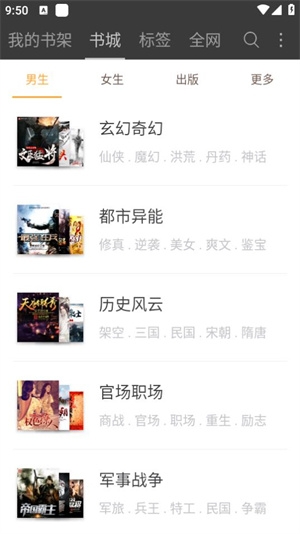 3、男生可以选择玄幻奇幻、都市异能、历史风云、军事战争等类型的小说。