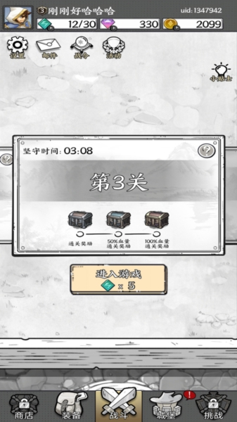 4、击败全部敌人后,即可完成关卡,同时获得武器、装备及金币奖励。