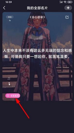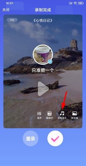 1.在我们录制好交友名片之后,点击【添加音乐】