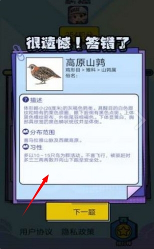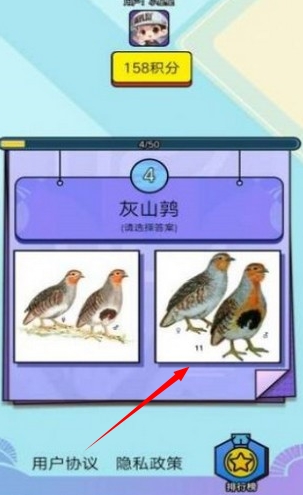 2、通过给出的鸟类名字选择正确的图片,答对就能获得积分
