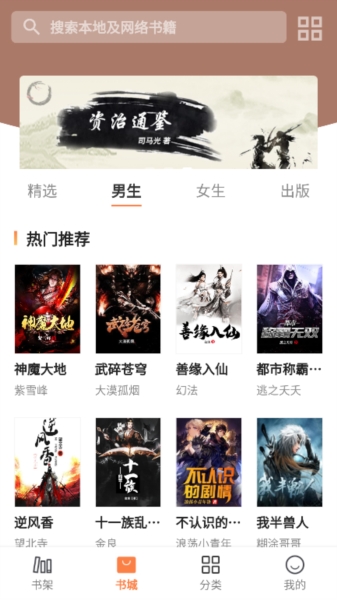 3、点击书城,您可以获得全部的小说书籍