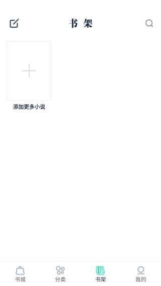 1、打开软件后,在书架页面点击+号可以去添加更多小说。