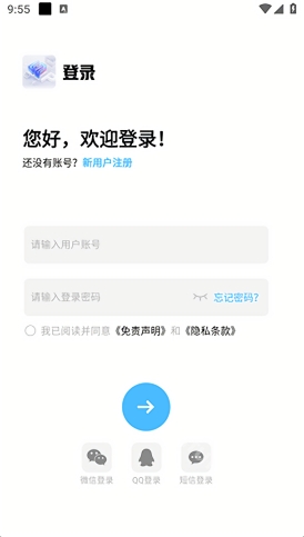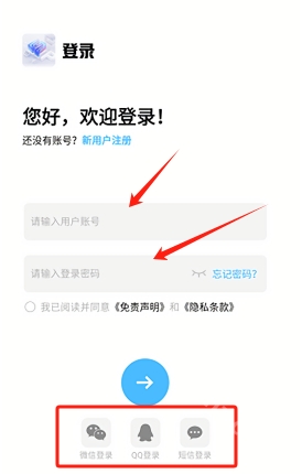 2、输入账号密码登录,也可选择微信、QQ或手机验证码登录
