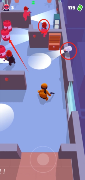4、关卡中还有摄像头扫视,尽可能的躲避,同时摧毁道具造成爆炸。
