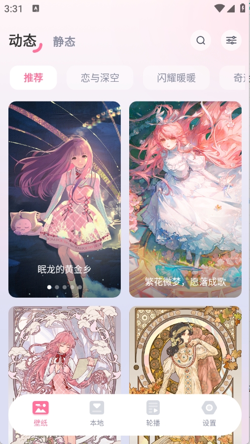 2、来到首页,动态壁纸静态壁纸都有,各种风格类型的壁纸都有。