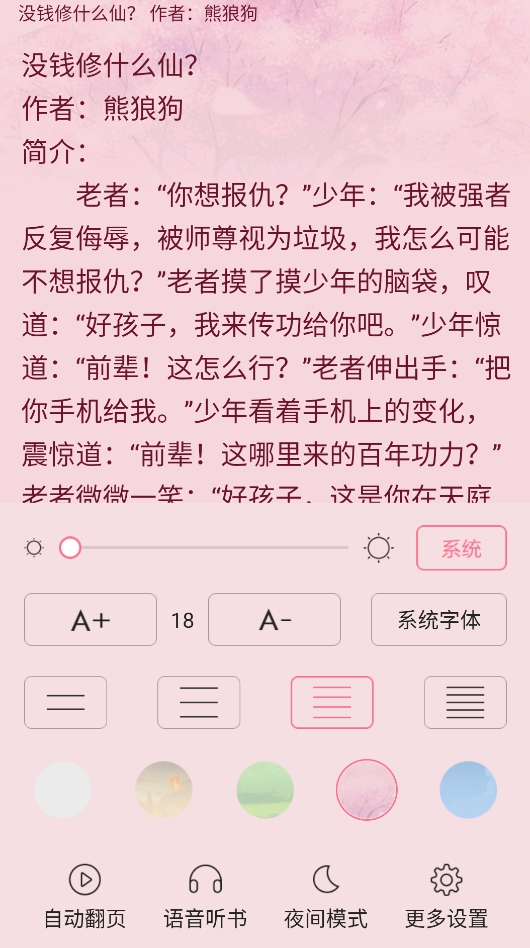 7、在设置页面中可以进行自定义字体大小、段落间距、阅读背景等。
