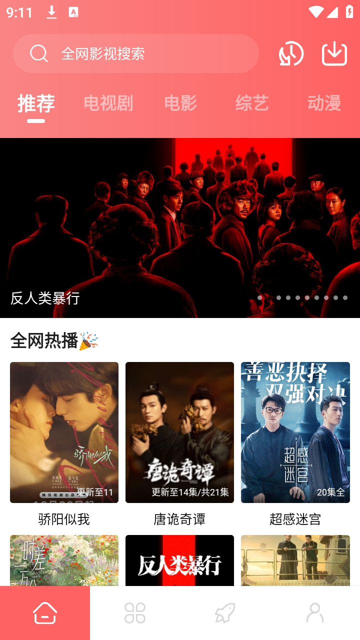 1、在本站内下载安装并打开app,进入首页,首页会为用户推荐很多影视资源,涵盖了电视剧、电影以及综艺等。