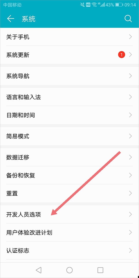 用户手机的开发者模式开启之后可以在手机的设置中找到系统