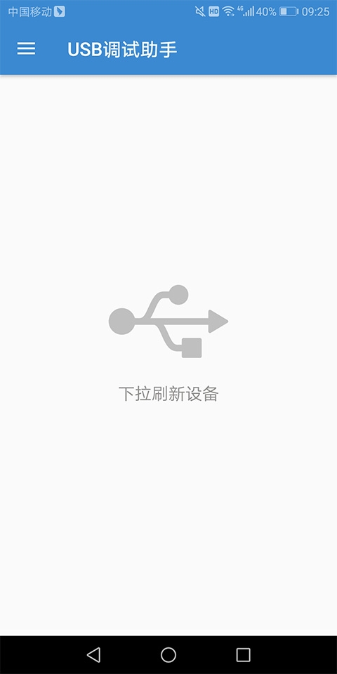 开启之后就可以打开usb调试助手,将usb数据线与其它设备进行连接,进入页面后即可看到连接的设备了,如果没有可以下拉页面将设备刷新出来