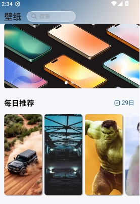 3、进入首页后,浏览“每日推荐”模块并点击“壁纸图片”进行预览。