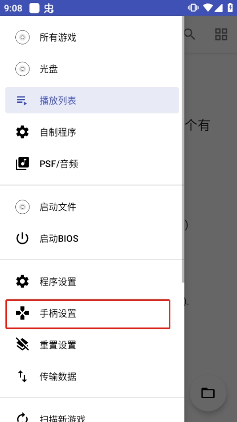 1、在本站下载安装并打开duckstation模拟器,使用手柄连接手机设备之后,点击左上方的三条杠按钮