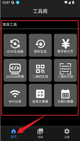 2、在首页页面中汇集了多种工具资源,如二维码识别等。
