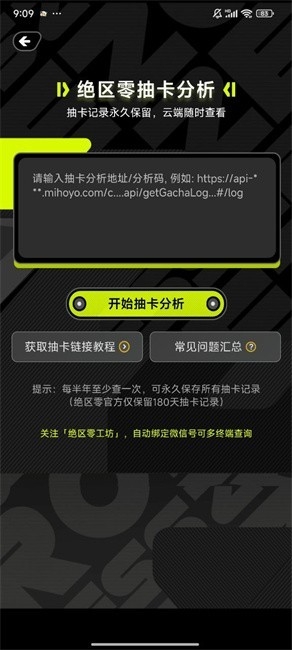 4、选择“抽卡分析”进入,输入抽卡分析地址,点击开始抽卡分析,即可查询绝区零的抽卡分析结果