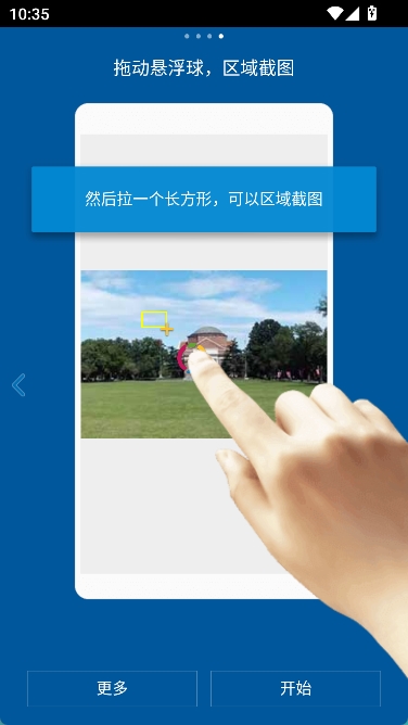 4.拖动悬浮球到合适位置,等待十字光标变黄,然后拉一个长方形,可以区域截图。
