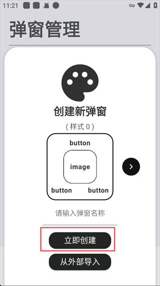 2、输入弹窗名称,然后点击“立即创建”。