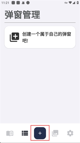 1、打开轻弹窗需创建一个专属弹窗:点击界面下方的【+】号按钮。