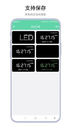 2、完成弹幕参数设置确认参数无误后点击开始弹幕按钮,启动LED弹幕显示,查看完LED弹幕显示后返回参数设置页面点击页面右上角历史记录按钮。