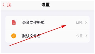 3、进入到随身鹿设置中,点击【录音文件格式】。
