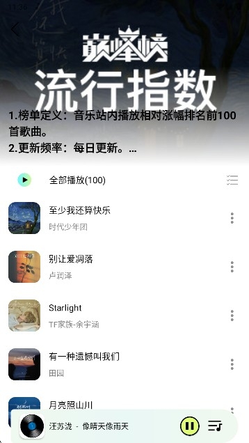 4、实时更新各大音乐榜单,包括流行榜、新歌榜、电台推荐等。