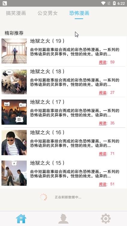 1、下载安装并打开诡异漫画软件,进入首页即可浏览平台推荐的各类漫画资源。