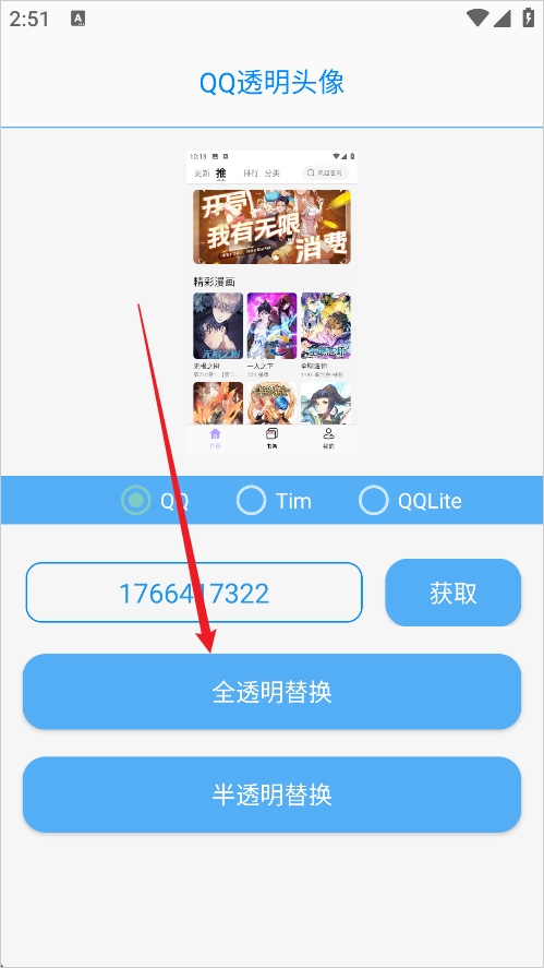 1、进入软件后点击下方的QQ透明头像
