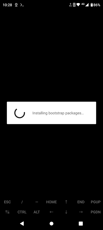 初次使用 Termux需等待 Installing bootstrap packages (安装引导程序包)完成,如下图。