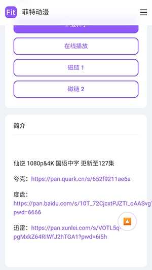 菲特动漫是一款动漫资源丰富的追番神器,汇聚了大量国内外优秀动漫作品,满足了不同用户的观看需求。可以在线查看新番表以及剧场版动漫,还支持分类搜索,使用起来非常方便,资源多多,赶紧点击下载吧。